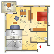 sind zwischen 33 und 63 m² groß mit Balkon oder Terrasse